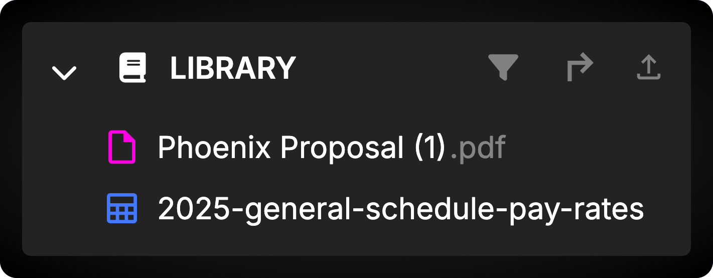The Index can be filtered using the Filter icon in the top right of each section. This can be useful if you only want to see a specific subset of items.Library