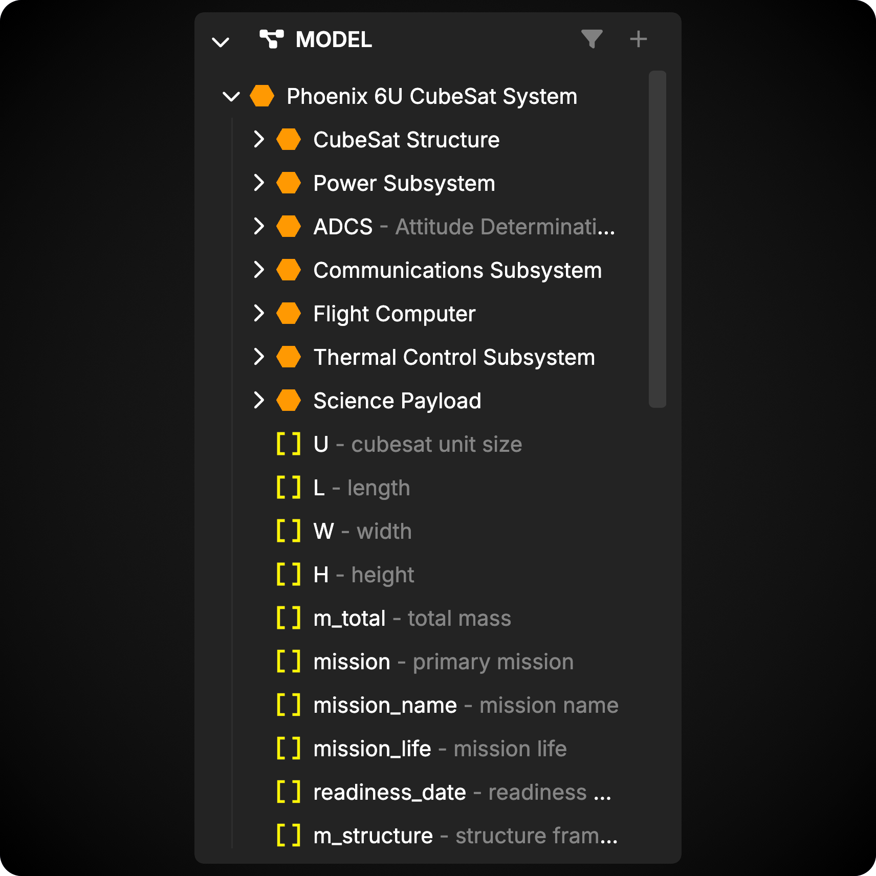The Model section of the Index is where your Model Objects live. These are the Objects that you will create and edit to form a comprehensive Model of your System. Model Objects can be organized into Packages for easier navigation.