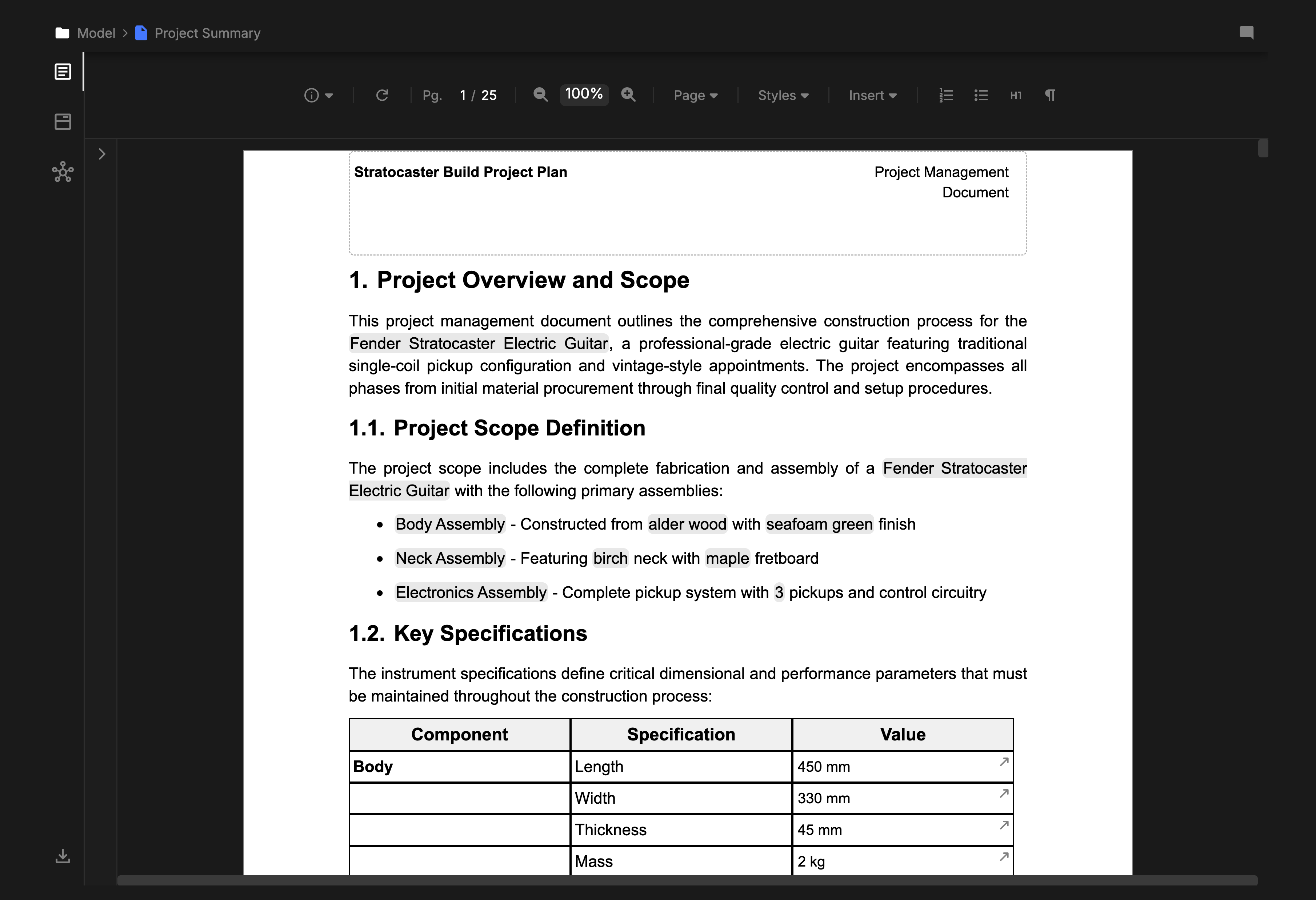 Documents are structured using blocks which can be given different display types, such as a bulleted list, heading, or simple paragraph. These blocks can also be references to other artifact objects, like a table. In these blocks the editing panel will respond to what kind of object is being edited.