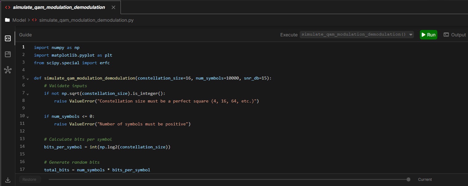 The Code View allows users to edit specific fields and structures of code objects beyond their base properties. This view consists of two panes: the left pane contains the code editor, while the right pane serves as the output terminal.