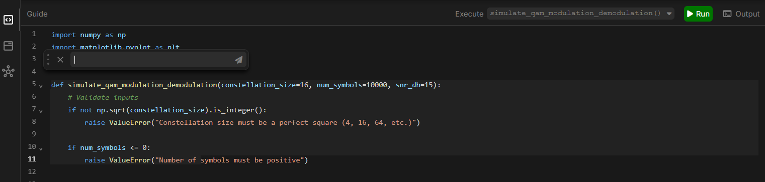 The output will display any prints or plots. If errors occur they will also be displayed here.You must use