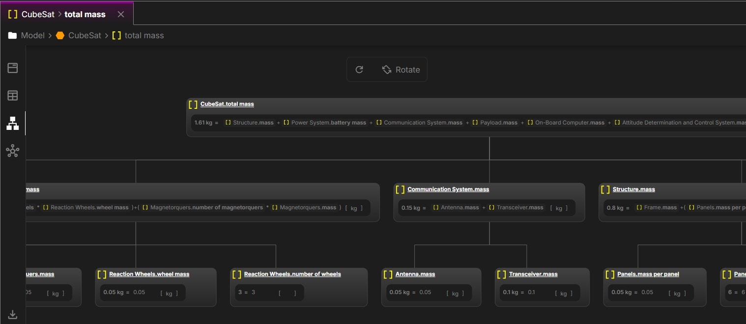 For attributes, the tree does not represent owned attributes but rather the referenced values used in equations. It visualizes the roll-up tree that determines the attribute values.