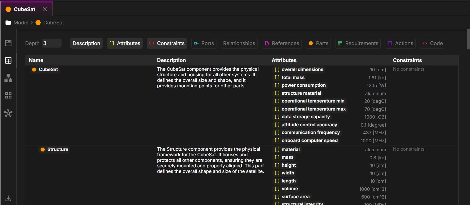 The Table View presents summary tables of objects, organizing them by rows based on object type (including their descendant paths). Different fields or child objects can be toggled for display. Indentation represents parent-child relationships and their depth.