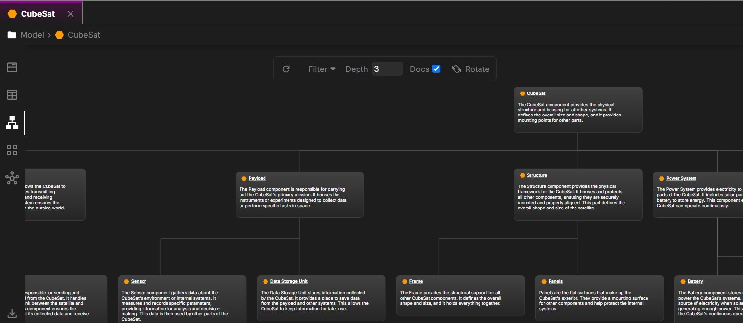 The Tree View provides a hierarchical breakdown of the object’s descendant tree. For each block in the tree, you can toggle the display of related owned objects or accompanying documentation.